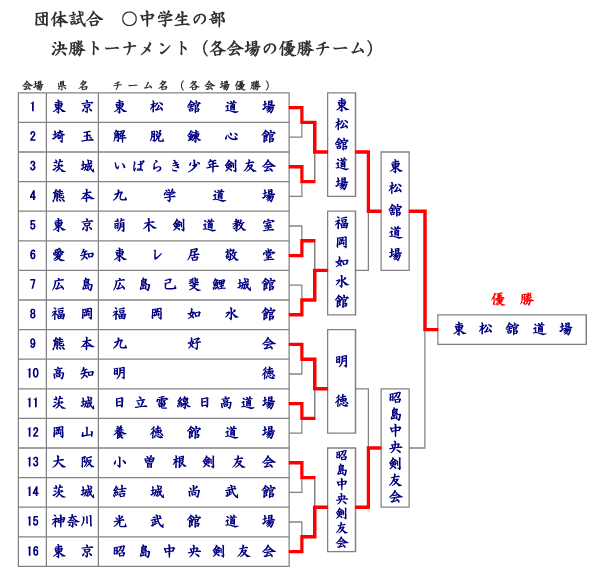| ▲中学生団体 優勝:東松舘道場(東京都) |