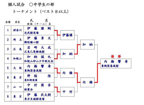 | ▲中学生個人 優勝:内橋響希(大阪府/東陶器春風館) |