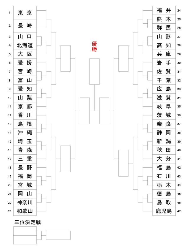 | 熊本県 | 4 | 3 | ― | 2 | 3 | 群馬県 |