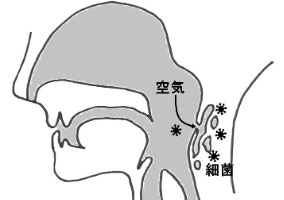 声帯が傷ついたり、周りの組織がむくんで声帯を圧迫すると、声がかすれたり全く出なくなってしまうことがあります。声帯のむくみがひどくなると息が吸えなくなって苦しくなることもあり得ます。また、障害の度合いが強いと、空気の通り道から外へ空気が漏れ、下で述べる縦郭気腫を起こすこともあり得ます。 - 咽頭・気管の外傷