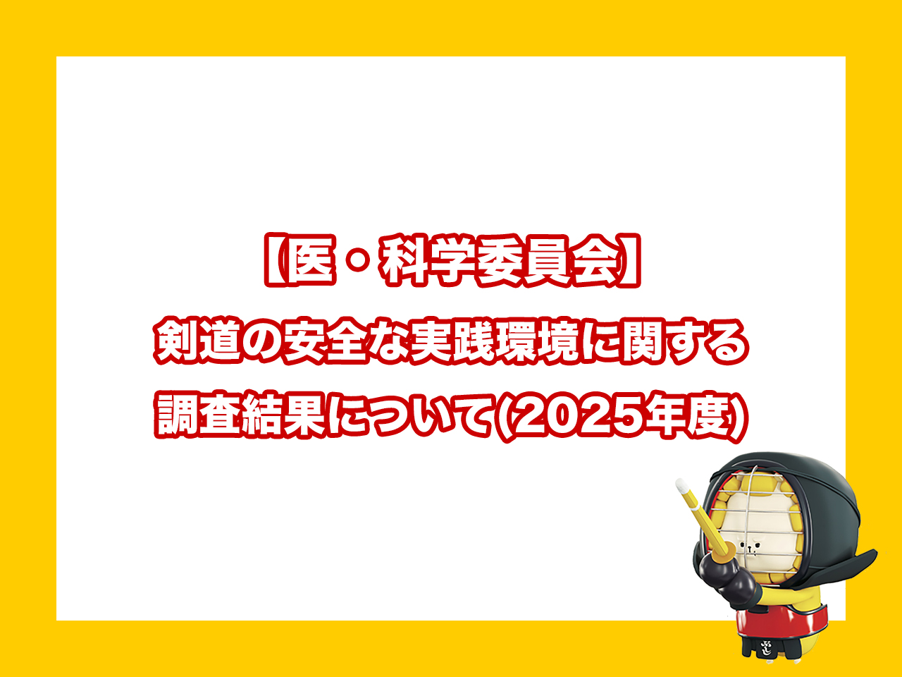 全日本剣道連盟 医・科学委員会では、剣道実践における安全環境の整備状況を把握するため、2025年7月1日から2026年3月31日にかけて調査を実施しました。