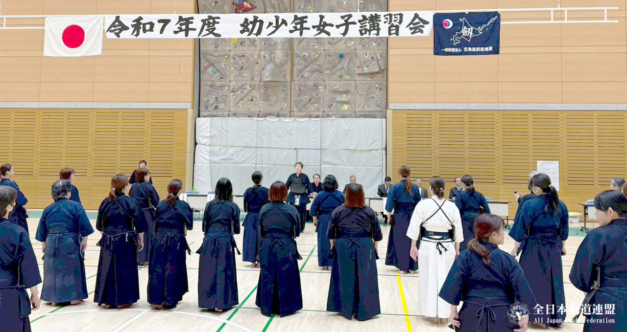 令和7年11月9日(日)、北海道立総合体育センター(北海きたえーる)において、北海道剣道連盟主催の幼少年女子講習会が開催され、全剣連からは女子委員2名、有名選手2名(1名はアスリート委員)、指導法講師として鈴木剛教士八段(強化委員)が派遣されました。