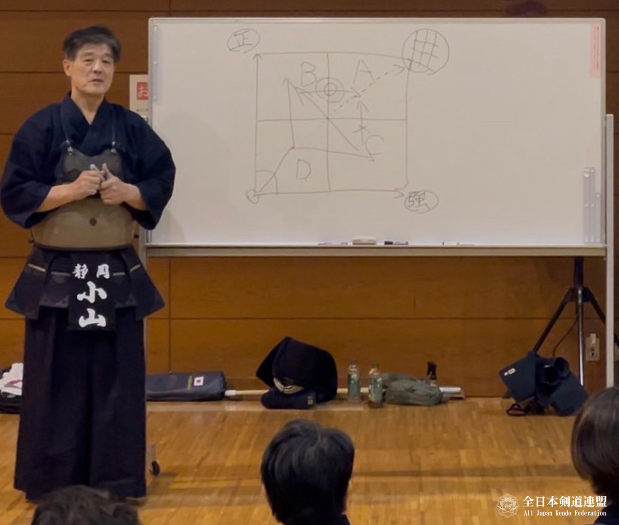 小山正洋範士からは、女子講習生へ向けて「志」に関する講話があった。「剣道に対して自分がどのようになりたいのか。目標に向かって何をやらなければならないのか。目的達成のために目標があり、自分なりに考える必要がある。自分の今のポジションを考えて指導にあたる(取り組む)必要がある」この言葉に、受講生たちは自らの剣道と向き合うことの重要性を再認識できた。