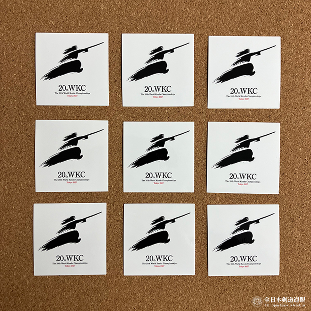 11月3日、日本武道館西口売店の全日本剣道連盟ブースにて大会プログラム・全剣連頒布物・ぶししグッズをご購入いただいた方を対象にシールタイプの「20WKCロゴステッカー(非売品)」を1枚プレゼントいたします。